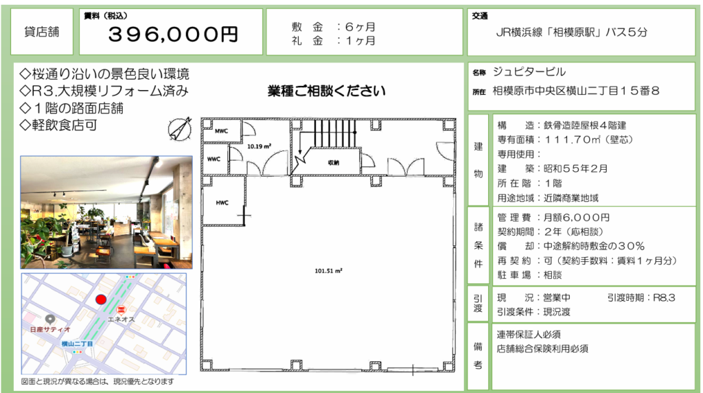 ジュピタービル(4階建の1階) 貸店舗の入居者募集のご案内